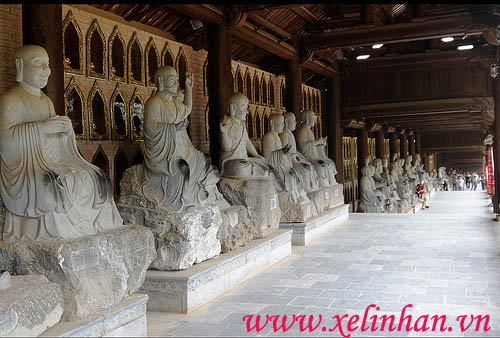 Khu chùa có nhiều tượng La Hán nhất Việt Nam: 500 vị bằng đá xanh cao khoảng 2m.
